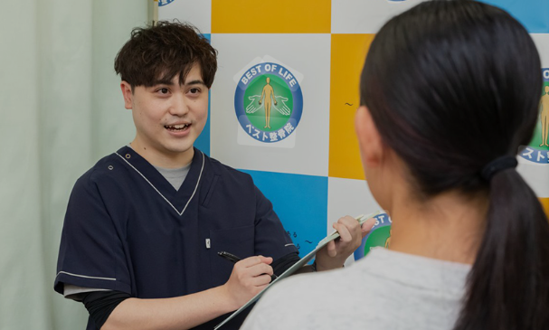 施術を行う前には丁寧な問診と体のチェックで、患者様の状態をしっかり把握してくれます。