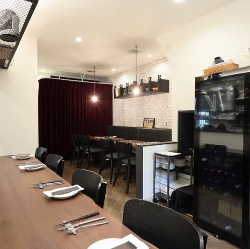 「炭火とワインで幸せな時間を」という思いが込められた店内は、誰もが気軽に立ち寄れる温かな空間です。