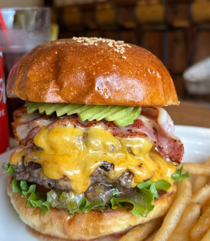 「BLACK AND BLUE」の看板メニューは、なんといっても絶品のハンバーガーです。バンズ、パティ、ソース、それぞれの素材一つひとつにこだわりが詰まっています。ジューシーな肉汁あふれるパティと、ふっくらとしたバンズ、そして特製のソースが絶妙なハーモニーを奏でます。見た目のインパクトはもちろん、一口食べればそのこだわりが伝わるはずです。一度食べたら忘れられない、やみつきになる美味しさをぜひご体験ください。