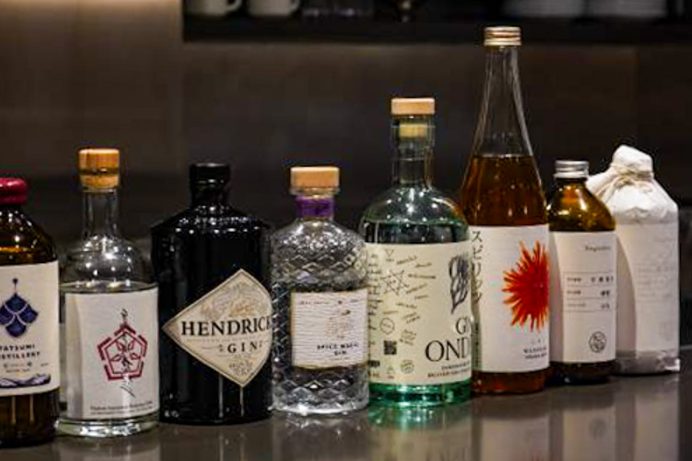 ワイン以外にもバナナやスパイスのジン、麦焼酎スピリッツなどを用意しています。