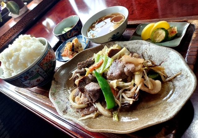 しし定食で提供される猪肉は甘味を感じ、しつこさのない上質な脂身が特徴です。