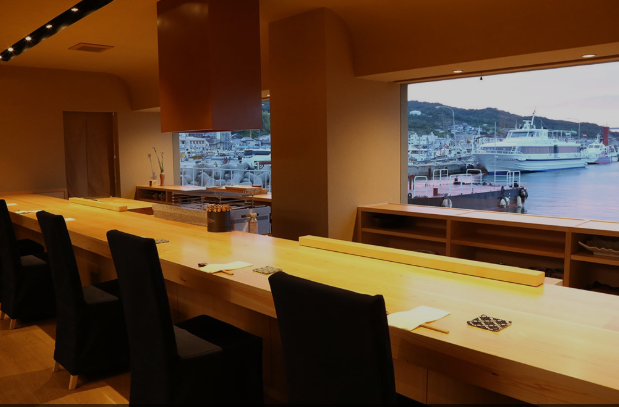 「寿司割烹 源平」のカウンター席からは、雄大な明石海峡大橋を眺めることができます。昼はきらめく海と空、夜はライトアップされた幻想的な橋を望みながら、職人が握る寿司を味わうひとときは格別です。味覚だけでなく、視覚からも楽しめるこの空間は、特別な記念日や大切な人との食事に最適です。この絶景と共に、至福のひとときをお過ごしください。