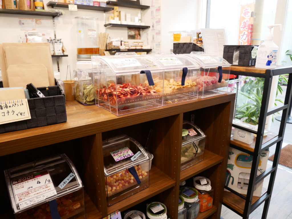 店内には、ナッツ類やドライフルーツ、パスタなど150種類以上の厳選商品が並んでいます。