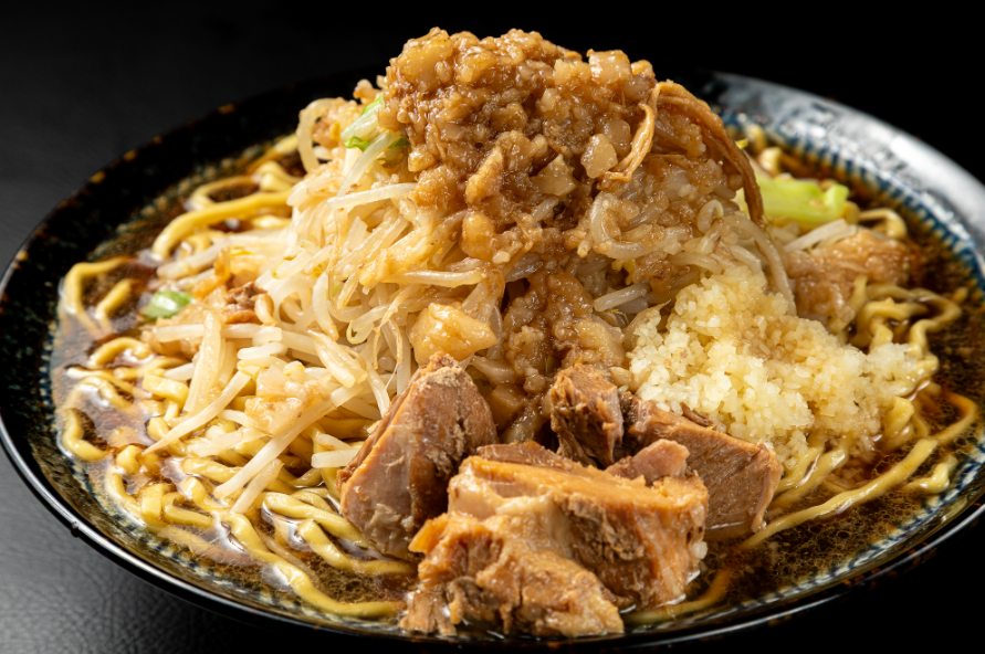 一般的な二郎系ラーメンの濃厚な旨味とコクはそのままに、独自の製法によって後味の重さを軽減しています。
