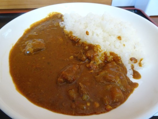 牛すじカレーはスパイスが効いた中辛で、その味わいがご飯をさらに引き立ててくれます。