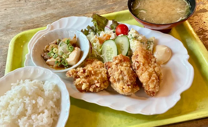 店内カフェでの食事も人気で、ふわとろのオムライスや鶏南蛮など、親しみやすい家庭的な味わいが旅の疲れを癒やします。