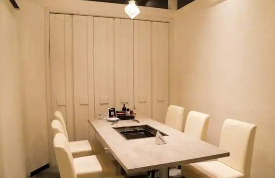 白を基調とした明るく開放的な店内は、従来の焼肉店のイメージを覆します。