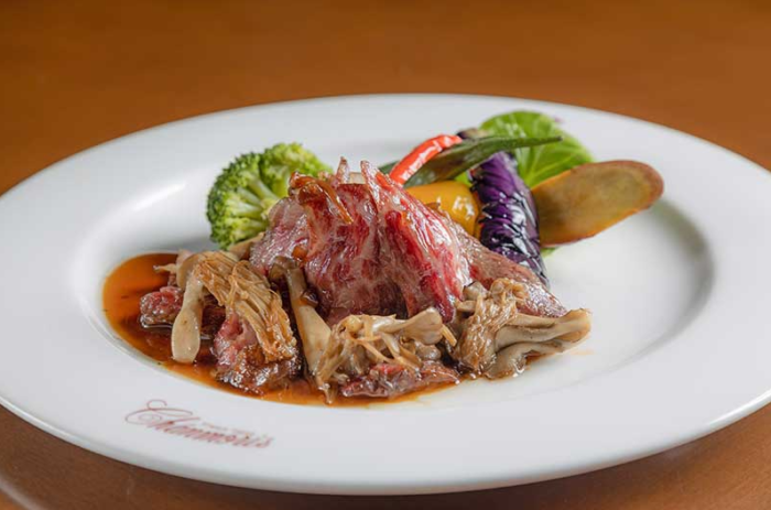 おすすめは「甲州ワインビーフの赤ワイン煮込み」。じっくり煮込まれた柔らかな肉に、ワインの深みが染み込み、口の中でほろりとほどける味わいです。