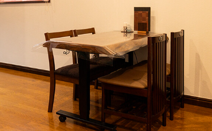 「健康食道 老若男女」は、全てのお客様に快適に過ごしていただくための工夫が満載です。店内は車椅子の方も利用しやすいように、動線を確保したバリアフリー設計になっています。また、電動昇降テーブルも設置されており、車椅子のままでスムーズに食事を楽しめます。誰もが安心して食事ができる、温かい配慮が随所に感じられます。