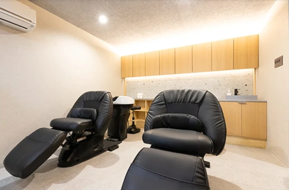 広々とした店内は、ガラス張りの外観と大谷石を基調にした内装が特徴です。大谷石のやさしい風合いが、訪れる人をあたたかく迎え入れます。周りを気にすることなく施術が受けられる半個室も用意されており、まるで自分だけのプライベート空間のようにくつろげます。日々の疲れを癒やしながら、ゆったりとした時間を過ごせることでしょう。