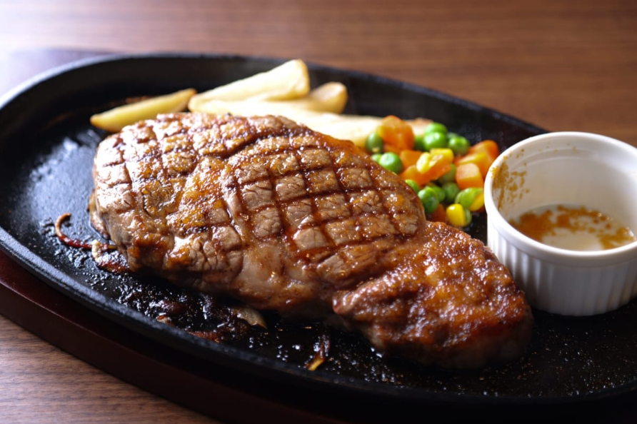 さらに、ステーキは熱々の鉄板で提供されるため、ジュージューと音を立てながら運ばれてくる様子は食欲をそそります。