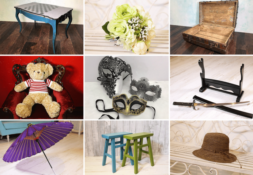 撮影に役立つ豊富な小道具や照明機材を、すべて無料でレンタルできることが大きな魅力です。