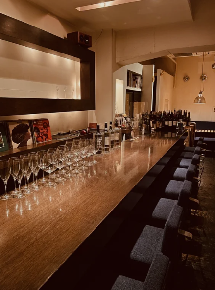 控えめな看板の先に現れるのは、琥珀色の光に包まれた、静寂と気品が満ちる大人のためのワインバーです。