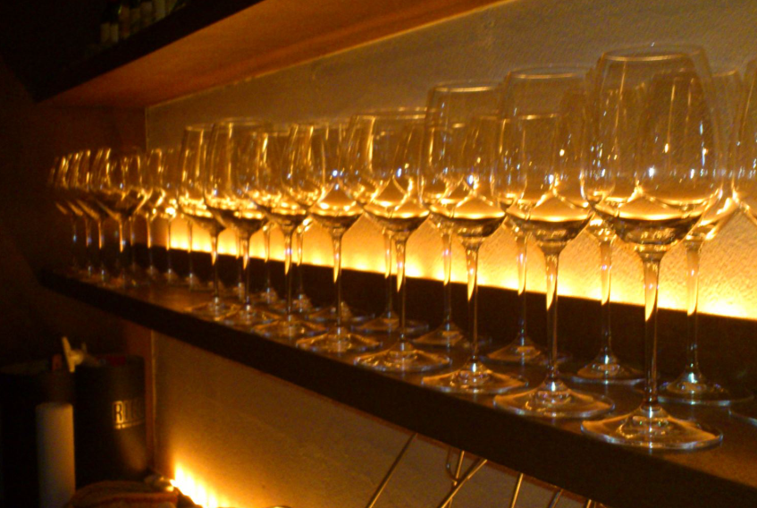 控えめな看板の先に現れるのは、琥珀色の光に包まれた、静寂と気品が満ちる大人のためのワインバーです。