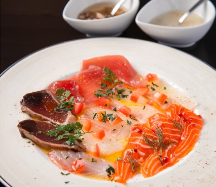 特に「本日鮮魚のカルパッチョ5種盛り」は、鮮やかな彩りが目を引く看板メニュー。