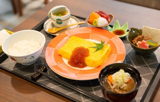 強火で一気に焼き上げることで、出汁の旨みがギュッと閉じ込められた出汁巻き玉子は、いくらやたらこなどのトッピングで、さらに豊かな味わいを楽しめます。