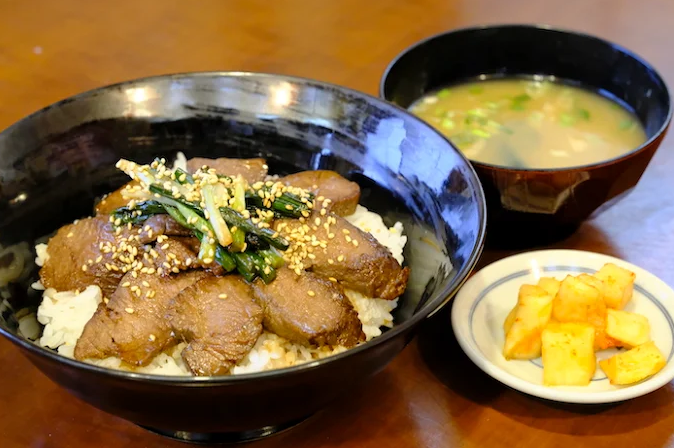 看板メニューは、阿寒湖産エゾシカ肉を使った深山丼。